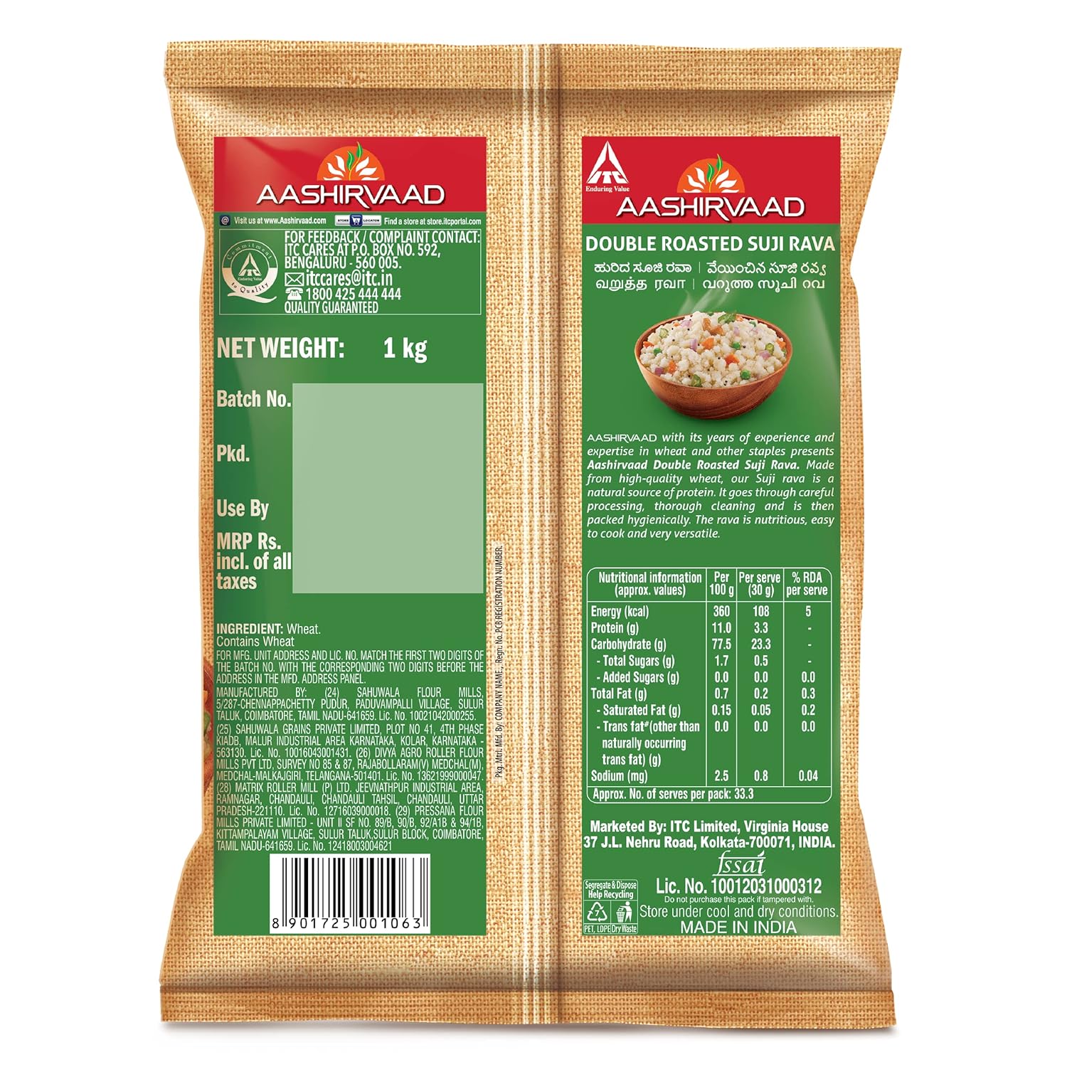 Discover the delightful Aashirvaad Double Roasted Suji Rava, a premium-quality wheat product that brings a world of flavour and nutrition to your kitchen. Crafted with care, this versatile rava (semolina) boasts a rich, nutty aroma and a delectable, smooth texture that elevates both sweet and savoury dishes. Packed with essential iron, minerals, and antioxidants, this double-roasted rava is a healthful addition to your culinary repertoire. Enjoy the convenience of its extended shelf life and the absence of any added preservatives or artificial flavours. Whether you’re whipping up a traditional Indian upma, crafting delectable couscous, or indulging in a creamy pudding, Aashirvaad Double Roasted Suji Rava is the perfect ingredient to elevate your cooking experience. Bring the authentic flavours of India to your table with this premium, non-sticky, and delicious rava.